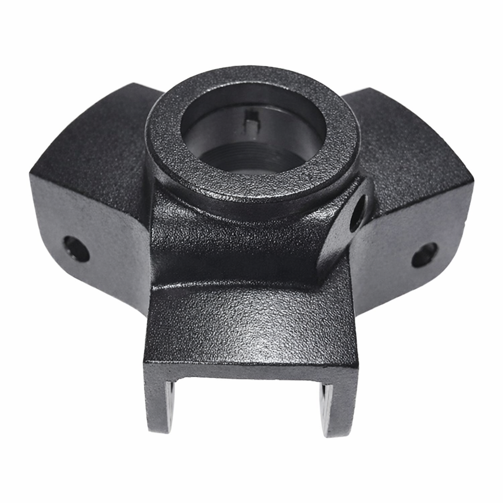 足の開脚角度を変えるためには、3本の脚がまとまる三脚ボディを複数の部品で作り、それを動かせるようにする必要があります。実はこの三脚ボディが三脚の本体として非常に重要で、ほとんどの三脚の「耐荷重」の数字はこの三脚ボディの強度によって決まります。部品をよく見ると、HUSKYの三脚ボディは完全に1つの金属から出来ており、そこにEVクランクギア、ストッパーノブ、ガイドパイプなどが装着されているだけです。また三脚ボディとパイプ先端の脚部アダプターは面接触するように計算されています。いずれも充分以上の堅牢性・耐久性・安定性を確保するための設計で、なにかを犠牲にすることはプロカメラマンが望んでいないからです。
